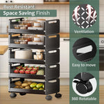 Upgrade your kitchen with this durable 5-tier trolley crafted from rust-resistant carbon steel. Its breathable, ventilated design keeps fruits, vegetables, and spices fresh and neatly organized, while each tier offers ample space for multiple items....