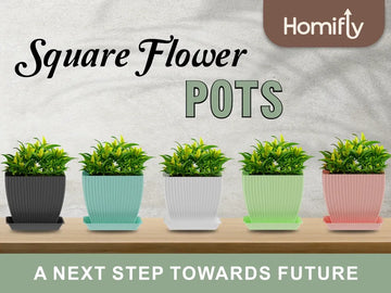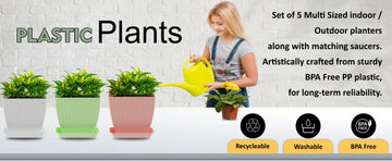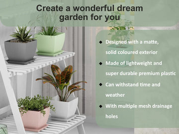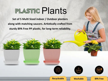 Set of 5 Plastic Flower Pots for Home & Garden (Square)