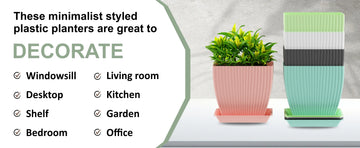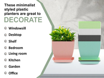 Add a touch of modern elegance to your space with these versatile plant pots, perfectly sized at 16 x 16.5 x 10 cm to beautifully showcase a variety of plants—from succulents and herbs to flowers and even small indoor trees. Crafted from high-quality, eco-friendly plastic, these pots are lightweight yet durable, built to withstand both indoor and outdoor use while remaining resistant to cracks. The sleek matte finish and subtle stripe detailing create a minimalist, stylish look that complements any setting, whether it’s your living room, balcony, kitchen, or office. Designed with multiple drainage holes, these pots ensure optimal soil aeration and healthy root growth. Each pot also includes a matching tray to catch excess water, keeping your surfaces clean and mess-free. Ideal for a wide range of plants and settings, these pots are a perfect blend of function and aesthetic appeal for plant lovers everywhere.