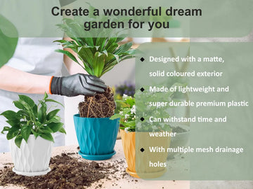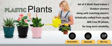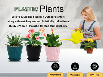 Set of 5 Plastic Flower Pots for Home & Garden (Wave)